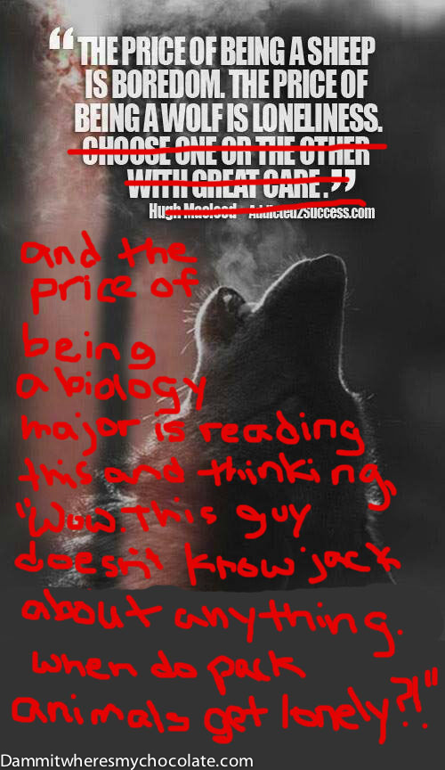 …and the price of being a biology major is reading this and thinking, “Wow.  This guy doesn’t know jack about anything.  When do pack animals get lonely?!”